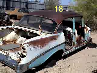 These cars have been sitting at a wrecking yard in southern Arizona for many years . Most of them have surface rust but are all very solid . The interior is rotted out in most but all the metal is still there and in good shape. Most do not have an engine as you can see from the pictures. If you are interested in a specific car send me an email at sales@texasautocraft.com and I will put you in contact with the owner. Reference what you are asking for in your email by including the yellow letters or numbers that are in the pictures in your email. So we know what you are asking about .